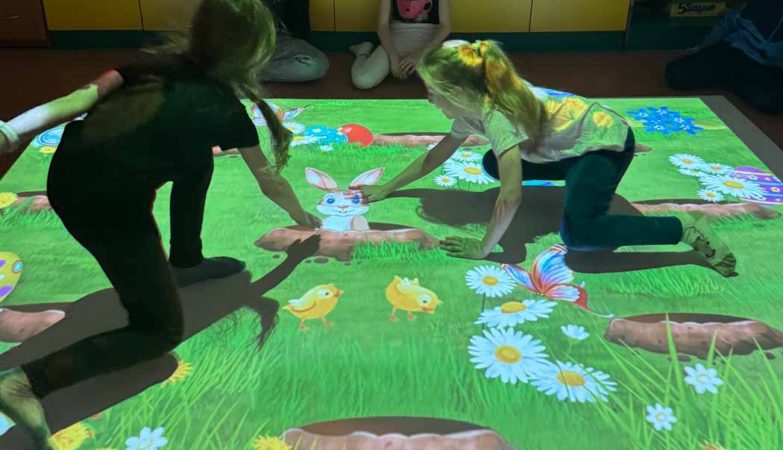 W świetlicy szkolnej dużym zainteresowaniem cieszyły się zajęcia z wykorzystaniem dywanu interaktywnego. Uczniowie mieli okazję uczestniczyć w różnorodnych grach relaksacyjnych