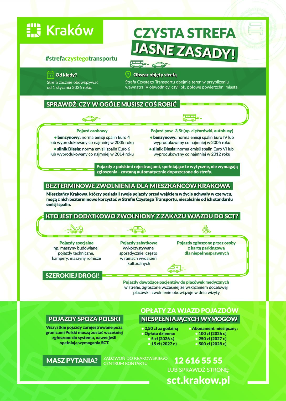 Szanowni Państwo, uprzejmie informujemy o funkcjonowaniu w Krakowie Strefy Czystego Transportu (SCT). W załączeniu przekazujemy materiały źródłowe zawierające rzetelne i