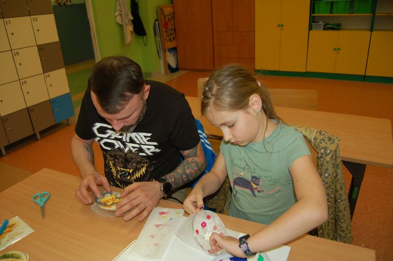 W szkole w tym roku prowadzone są dodatkowe zajęcia plastyczne. Służą one rozwijaniu umiejętności manualnych, wyobraźni i kreatywności oraz wspierają ogólny rozwój osobowości dziecka. Oprócz zajęć dla dzieci organizujemy warsztaty z udziałem Rodziców stwarzając okazję do wspólnej rodzinnej twórczości.