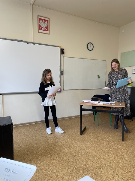 27 kwietnia 2022 r. w przedstawiciele klas 1-3 wzięli udział w Międzyszkolnym Konkursie Pięknego Czytania w języku angielskim, zorganizowanym przez Szkołę Podstawową nr 61 im. Józefa Piłsudskiego. W ramach przygotowań do konkursu uczniowie musieli przygotować 2, 3 lub 4 (w zależności od klasy) teksty konkursowe, a następnie zaprezentować komisji konkursowej oraz publiczności wylosowane opowiadanie. Ocenianie podlegały takie komponenty jak: dykcja, interpretacja tekstu, poprawność wymowy oraz płynność czytania. Reprezentanci naszej szkoły wypadli doskonale. Pierwsze miejsce i tytuł Mistrza Pięknego Czytania w kategorii klas III zdobyła Helena Matoga z III a. Tymoteusz Techmański z II b zdobył II miejsce wśród drugoklasistów, a Adrian Religa z I a zajął IV miejsce w kategorii klas pierwszych.