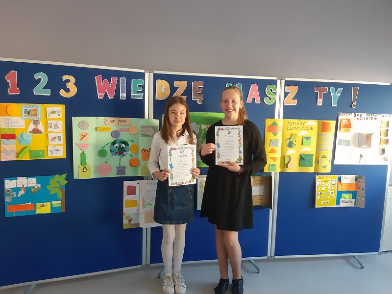 Uczennice klasy 5b zajęły pierwsze miejsce w konkursie dla Szkół Podstawowych Dzielnicy XII z wiedzy ekologiczno – matematycznej „1,2,3 – wiedzę masz Ty”.