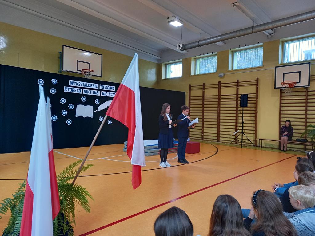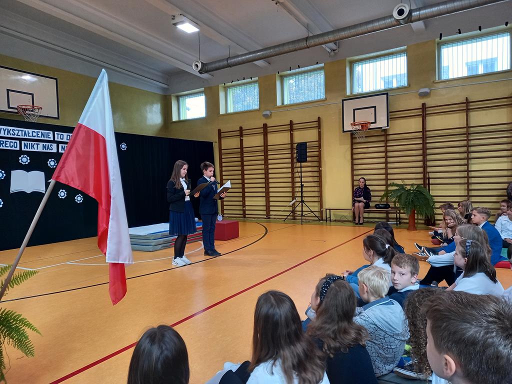 Ogólne Święto Edukacji Narodowej 15 października, 2022 Apel z okazji Święta Edukacji Narodowej przygotowany przez klasę 5B pod opieką wychowawczyni Małgorzaty Korus.