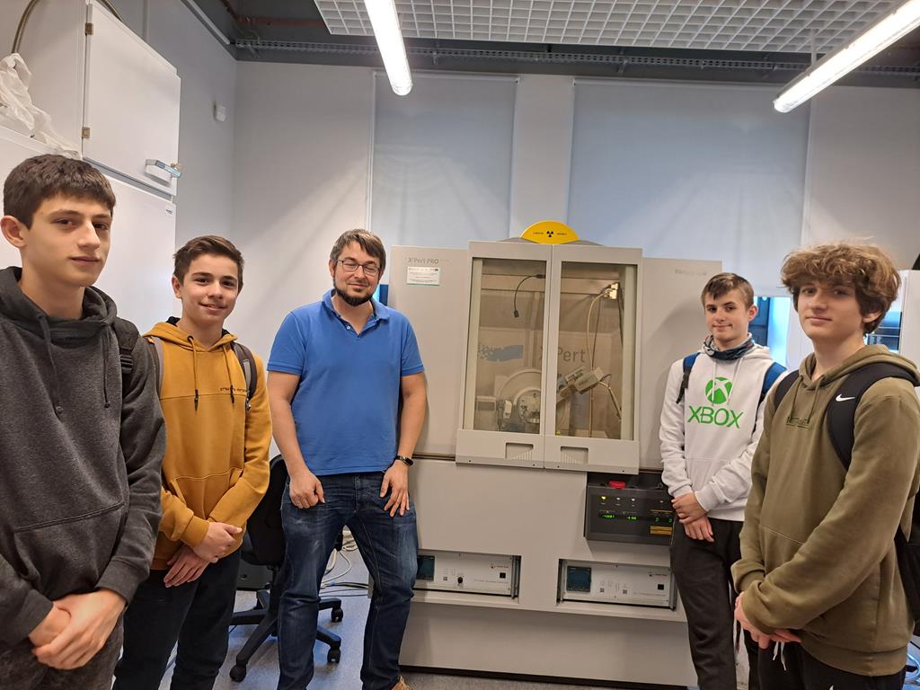 Zostaliśmy zaproszeni na spacer po nowoczesnym budynku Wydziału, zobaczyliśmy laboratoria studenckie, sale wykładowe, spotkaliśmy się z pracownikiem naukowym laboratorium dyfraktometrii proszkowej, który wyjaśnił jak w badaniach substancji można wykorzystać promieniowanie rentgenowskie, zapoznaliśmy się z ekspozycjami wystaw minerałów.