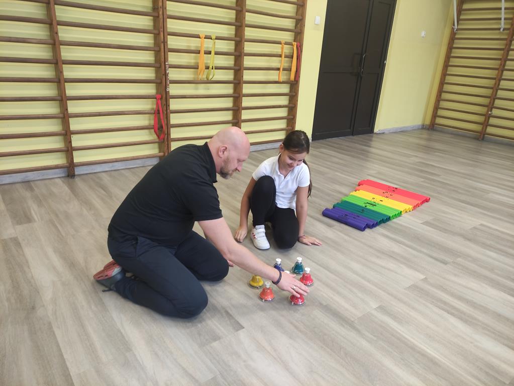 z dziećmi, ale nie tylko, bo szkoli także nauczycieli w całej Polsce i szerzy idee aktywnego uczenia muzyki poprzez wykorzystanie m.in. innowacyjnych instrumentów jakimi są bum bum rurki ale także dzwonki a wszystko to w oparciu o metodę Chroma Notes (kolorowe nuty).