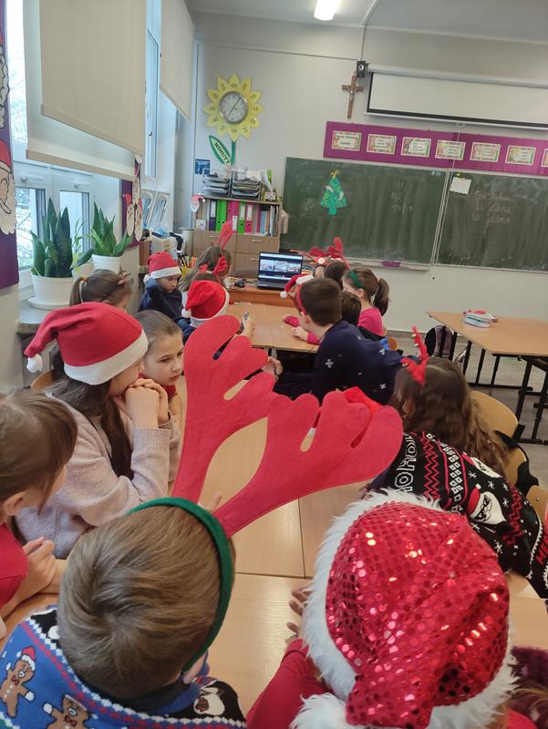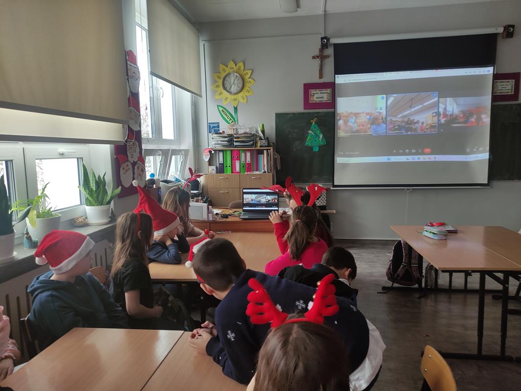 Uczniowie połączyli się ze sobą pierwszy raz, by poznać się i złożyć sobie życzenia świąteczne. Każda z klas przygotowała piosenkę, którą dedykowała pozostałym partnerom.