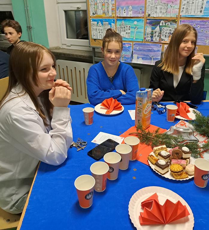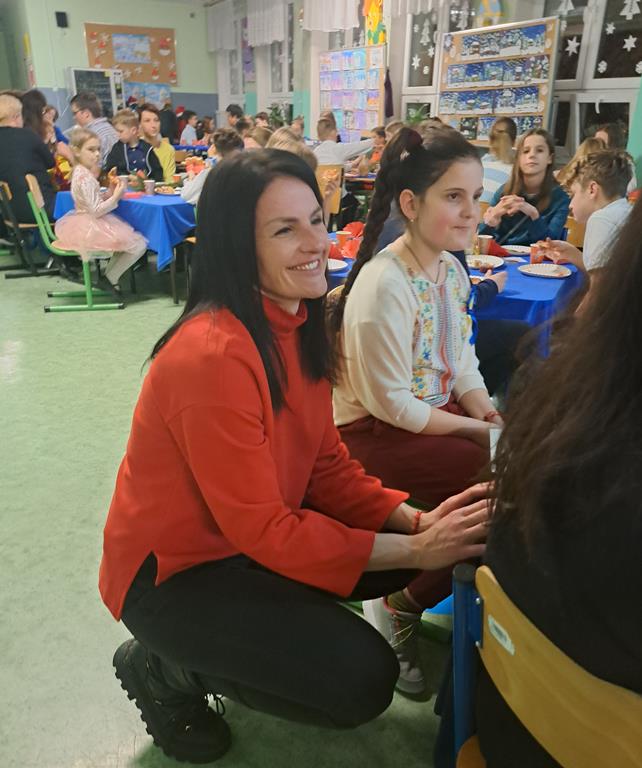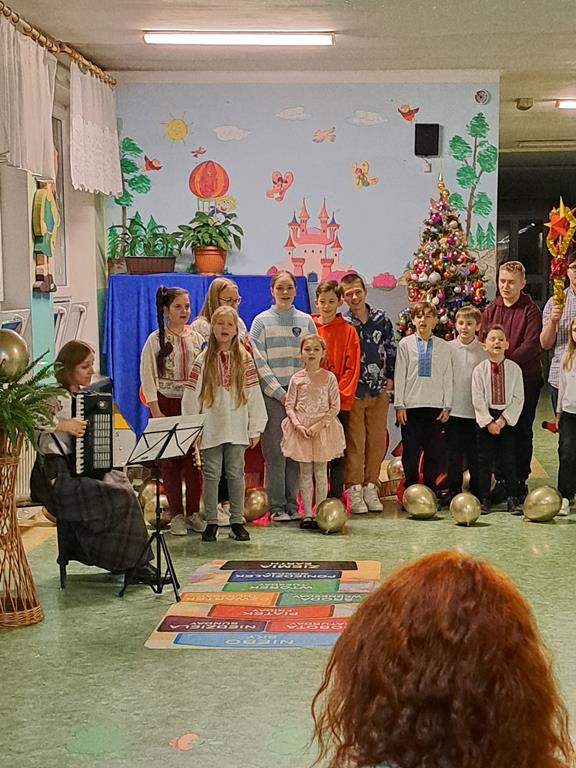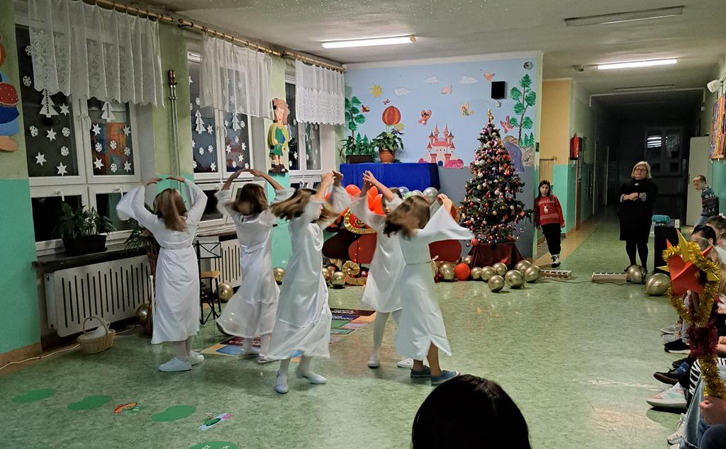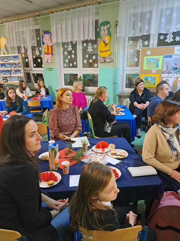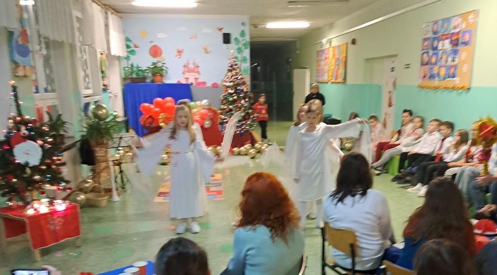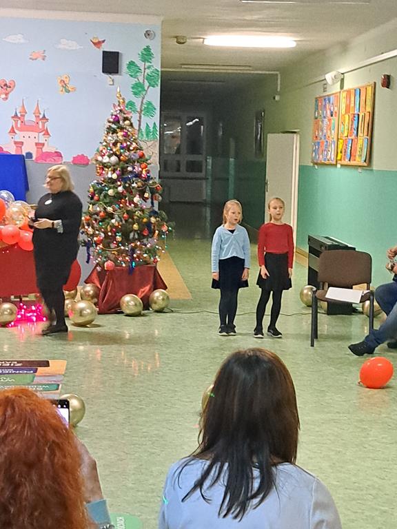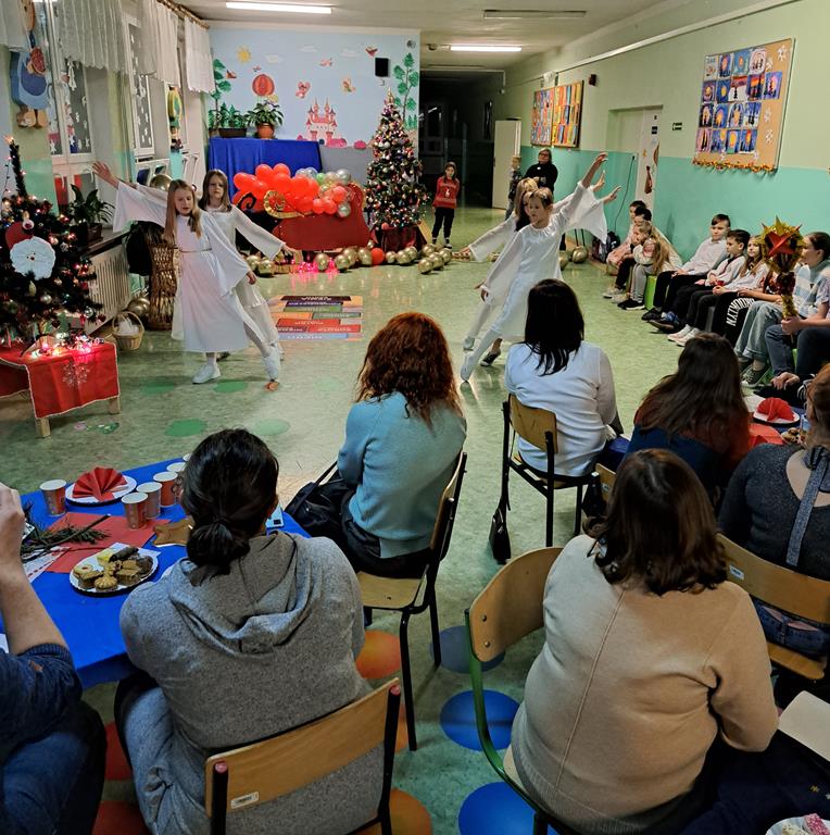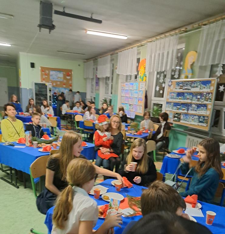 20 grudnia 2022 roku w naszej szkole odbyła się świąteczna wieczornica, na której zgromadzili się uczniowie, rodzice, nauczyciele oraz zaproszeni goście. Spotkanie rozpoczął występ klasy trzeciej pod opieką wychowawczyni pani Barbary Bartnik. Uczniowie zatańczyli świąteczny układ oraz zagrali na dzwonkach kolędę Lulajże Jezuniu. Dzieci z Ukrainy, pod fachowym okiem pani Iriny – asystenta międzykulturowego, zaprezentowały kolędy tak w języku ukraińskim, jak i polskim przy dźwiękach akordeonu. Szczególną uwagę zwróciły narodowe elementy stroju uczniów, które dodały powagi całemu występowi. Wspólne spotkanie odbyło się w miłej atmosferze i pięknej scenerii. Świąteczną dekorację przygotowali wolontariusze ze Szkolnego Koła Wolontariatu SP111, którzy również dopilnowali klimatu przy uroczyście przygotowanych stolikach. Przybyli goście mogli poczęstować się słodkościami, pizzą, herbatą i kawką z ekspresu, serwowanymi przez wolontariuszy.