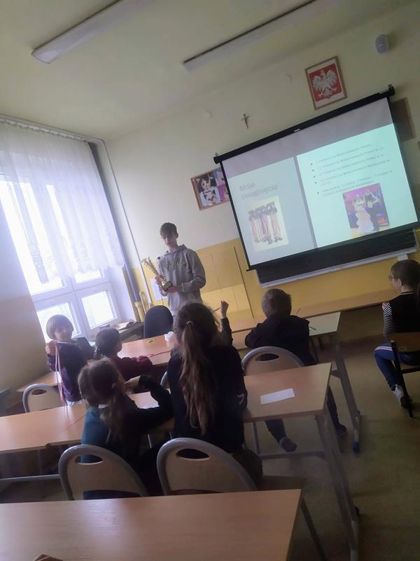 Wiktor opowiedział swoim młodszym kolegom i koleżankom o tym jak przebiegała jego ścieżka w rozwoju kariery tanecznej. Prezentacja poparta była wieloma zdjęciami ale przede wszystkim bogata była w przykłady odnoszące się do życia Wiktora i jego doświadczeń opisujących jakie są zalety wynikające z rozwoju sportowego, ale także jakie mogą pojawiać się utrudnienia.
