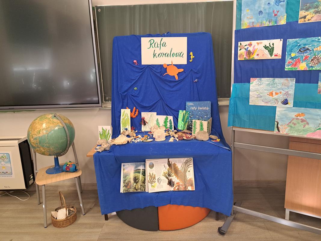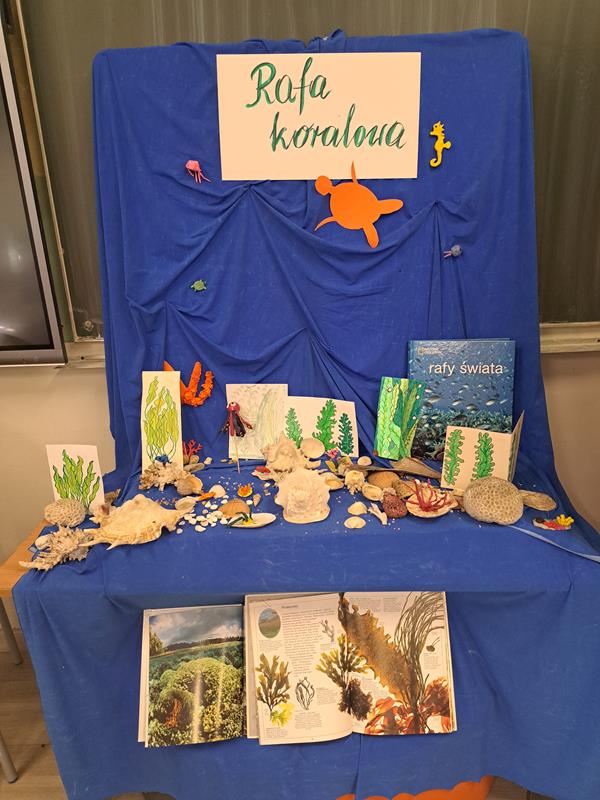 W klasie 4b realizowany był międzyprzedmiotowy projekt STEAM, którego tematem przewodnim było zapoznanie się z ekosystemem i bioróżnorodnością rafy koralowej, na przykładzie Wielkiej Rafy Koralowej – która jest obiektem światowego dziedzictwa UNESCO.  Projekt obejmował lekcje przyrody, na których uczniowie zapoznali się z położeniem Wielkiej Rafy Koralowej, dowiedzieli się jakie organizmy ją budują oraz dla jakich organizmów jest ona domem. Uczniowie poznawali także przyczyny zamierania rafy koralowej, zarówno te naturalne jak i antropogeniczne. Dowiedzieli się czym jest lista światowego dziedzictwa UNESCO. Na lekcjach plastyki, dzieci przeniosły swoje wyobrażenia rafy na papier i tak powstała galeria prac klasy. Kolejnym etapem projektu podczas lekcji przyrody, było stworzenie trójwymiarowej makiety rafy koralowej – tę część uczniowie wykonali wykorzystując długopisy 3D zakupione dzięki rządowemu programowi Laboratoria Przyszłości. Swoją wiedzę zdobytą podczas trwania projektu uczniowie sprawdzili biorąc udział w klasowym quzie Kahoot. Zakończenie projektu odbyło się na języku polskim, dzieci tworzyły wypowiedź pisemną – opis wykonanej makiety. Małgorzata Waga, Anna Fejkiel-Krupczak, Agnieszka Korpak – Perzanowska, Anna Mieszczyńska – Paruch