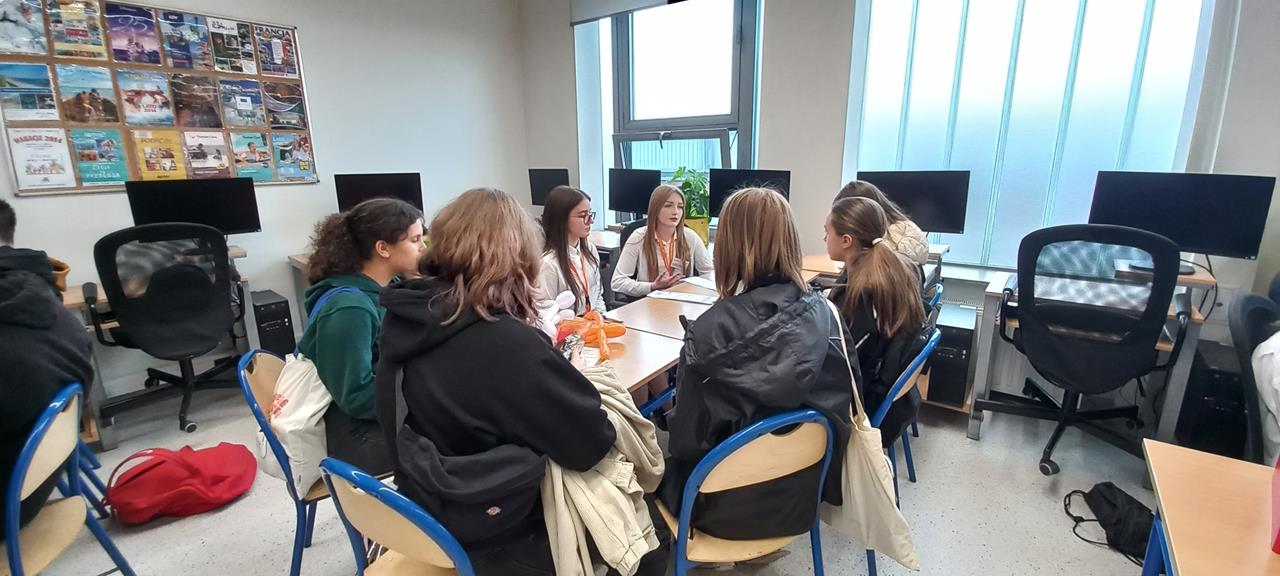 Młodzież zapoznała się z ofertą edukacyjną szkoły, warunkami przyjęcia do szkoły, zasadami rekrutacji, wzięła udział w spacerze po szkole mającym na celu pokazanie wyposażenia sal i pracowni w zależności od zawodu, w którym uczniowie się kształcą.