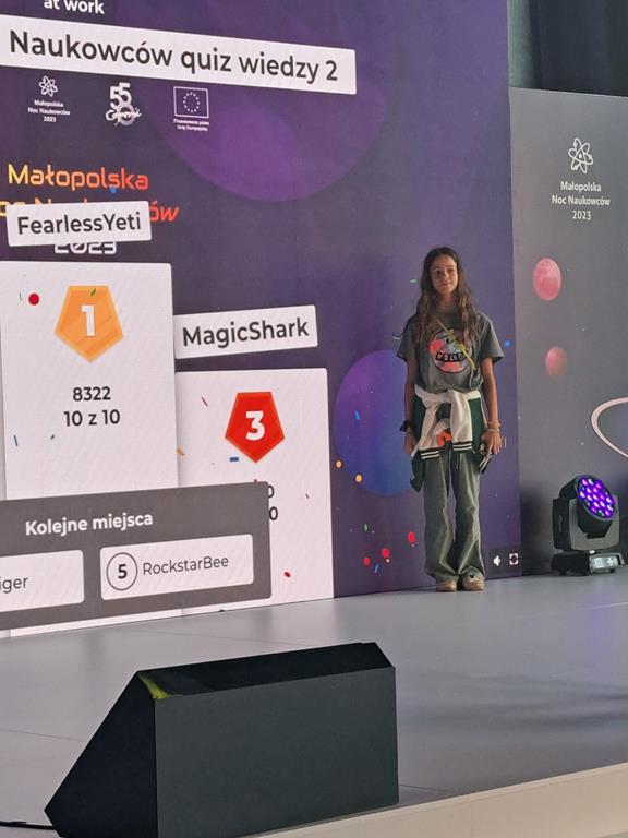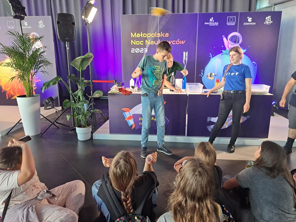 Chętni uczniowie klas siódmych i ósmych wzięli udział w pokazach chemiczno-fizycznych zorganizowanych przez Małopolskie Centrum Nauki Cogiteon. Tematem przewodnim pokazów były żywioły. Uczniowie wzięli także udział w seansie kosmicznym przygotowanym w specjalnym namiocie. Na koniec wszyscy zgromadzeni mieli możliwość sprawdzić swoją wiedzę w Quizie Kahoot. Nasza uczennica Karolina zdobyła wysokie trzecie miejsce.
