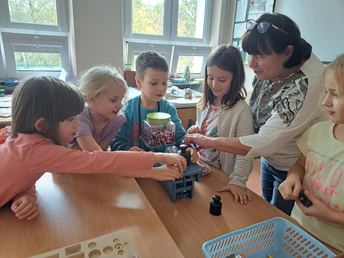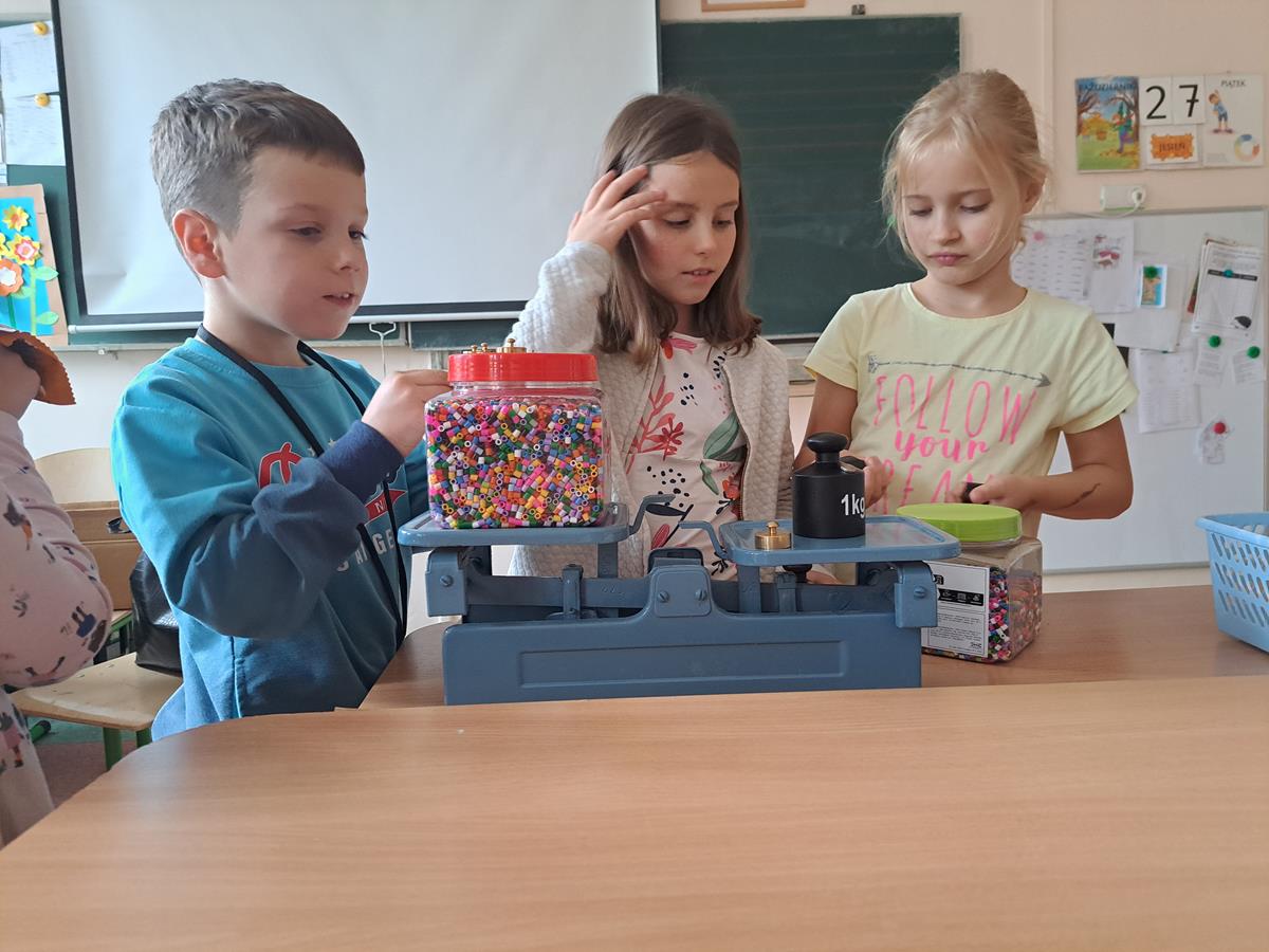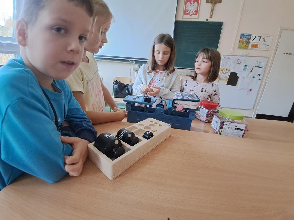 Podczas zajęć świetlicowych, dzieci korzystając z zasobów Laboratorium Przyszłości zapoznały się z działaniem klasycznej wagi. Przy pomocy odważników, miały okazję zważyć swój własny piórnik, jabłko, czy klocki. Podczas tych zajęć dzieci zapoznały się z zasadą działania wagi, dowiedziały się jak ją zrównoważyć, zapoznały się z jednostkami masy oraz odważnikami. Wszystkim zajęcia bardzo się podobały.