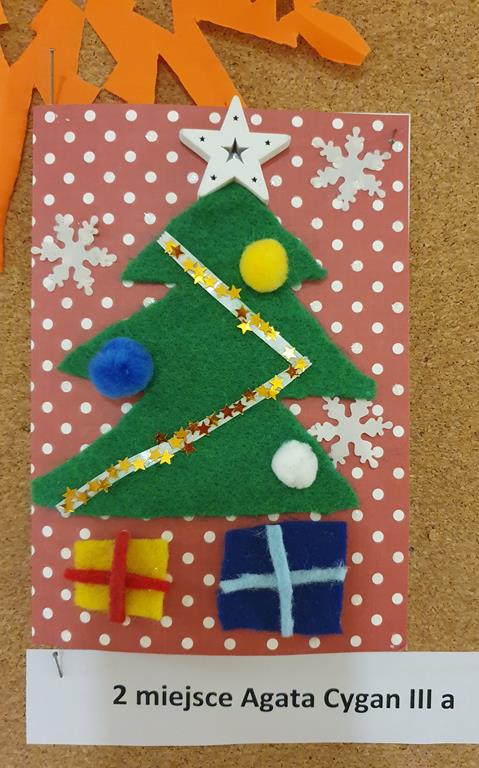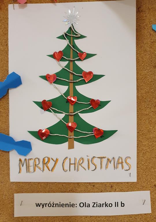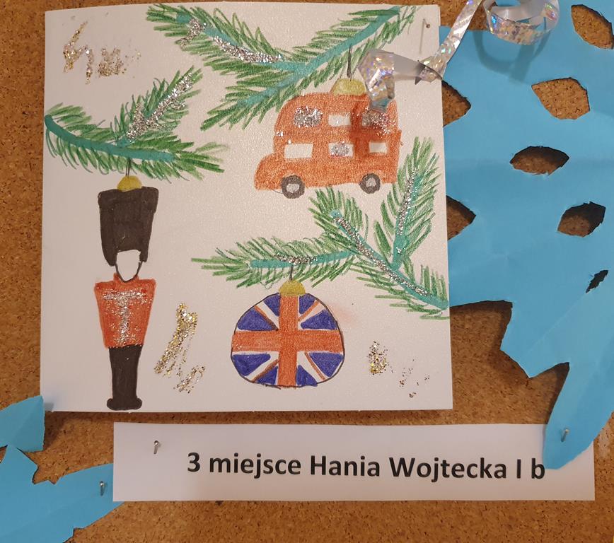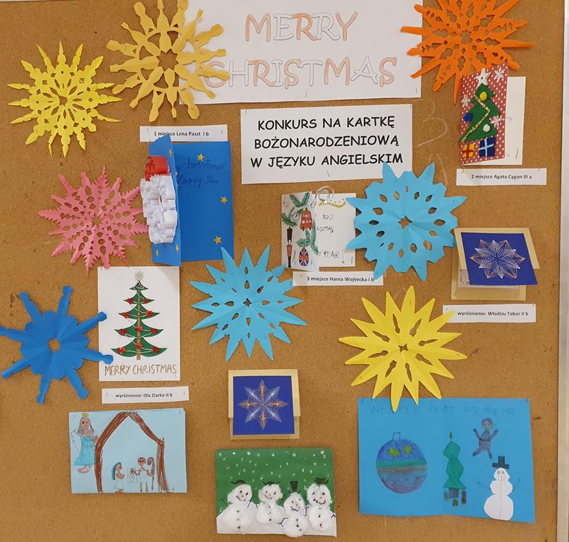 Dziękujemy wszystkim uczestnikom klas I-III biorącym udział w konkursie na własnoręcznie wykonaną bożonarodzeniową kartkę w języku angielskim. Spośród otrzymanych prac jury wyłoniło następujących laureatów: