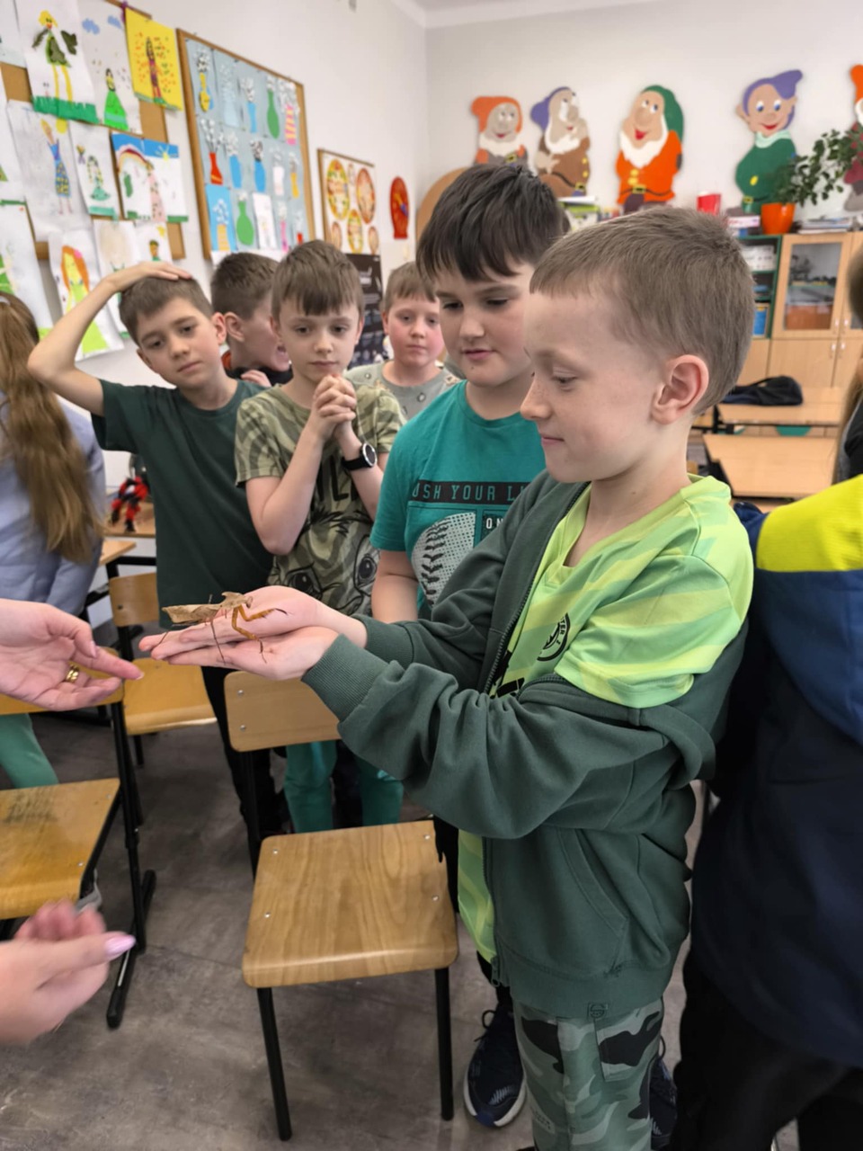 Uczniowie klas 1–3 mieli okazję wziąć udział w warsztatach przyrodniczych zatytułowanych Fascynujący Świat Owadów i Pajęczaków Profesora Pytalskiego. Podczas zajęć dzieci zgłębiały tajemnice modliszek – drapieżnych łowców w świecie owadów.