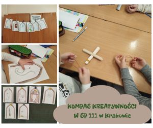 W klasach drugich odbyły się kolejne zajęcia realizowane w ramach projektu „Kompas kreatywności”. Uczniowie podjęli nowe, twórcze wyzwania – próbowali uratować krakowskiego hejnalistę, konstruując katapultę zdolną „wystrzeliwać” obwarzanki, a następnie projektowali własne, unikatowe pamiątki, które mogłyby trafić do sprzedaży w Sukiennicach.
