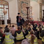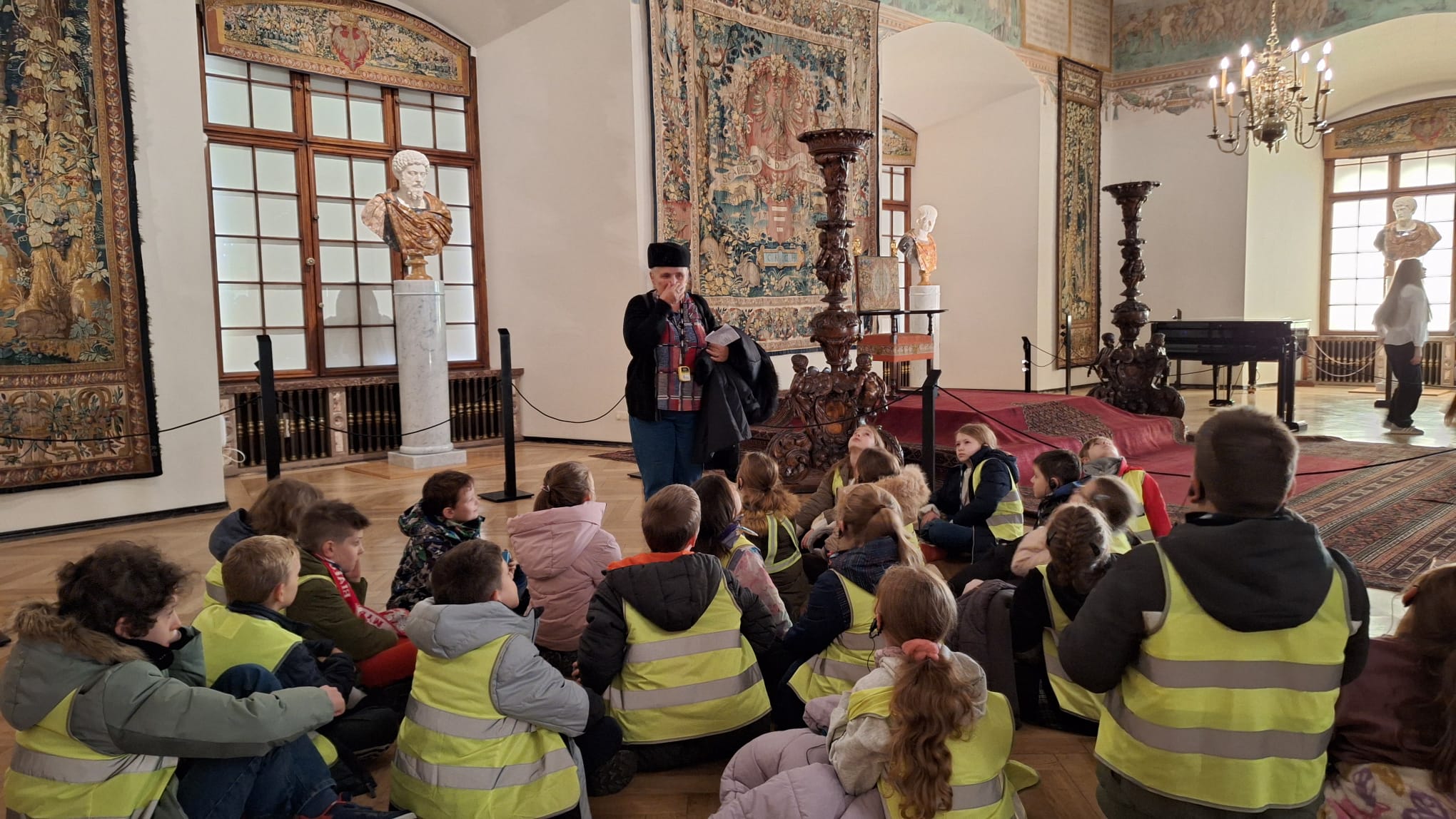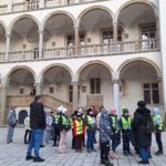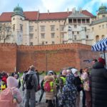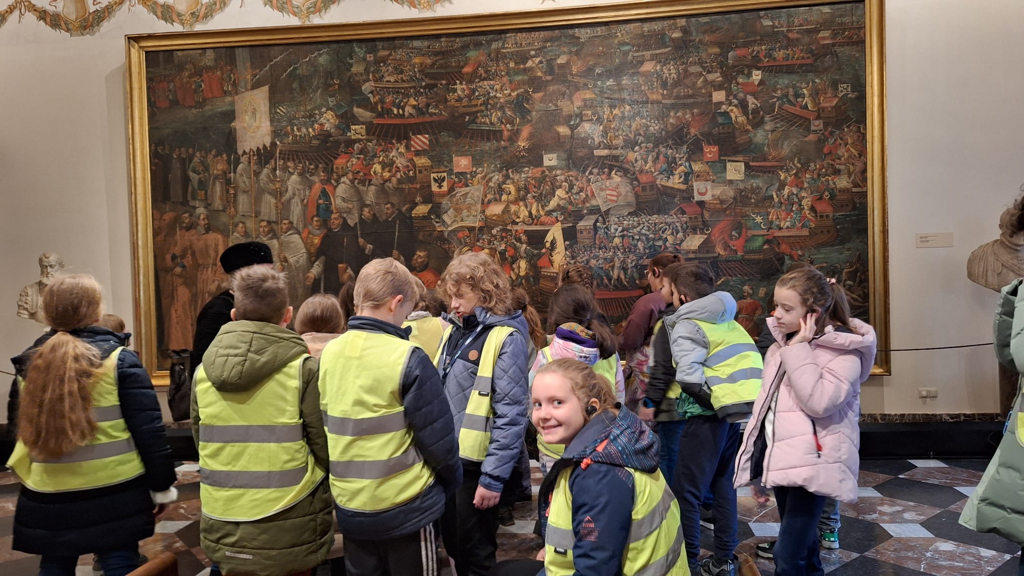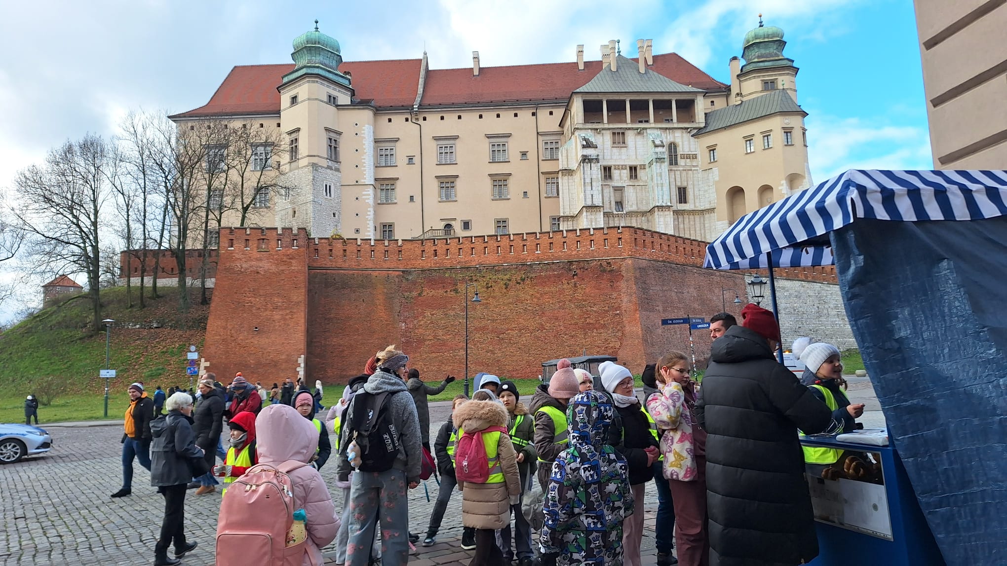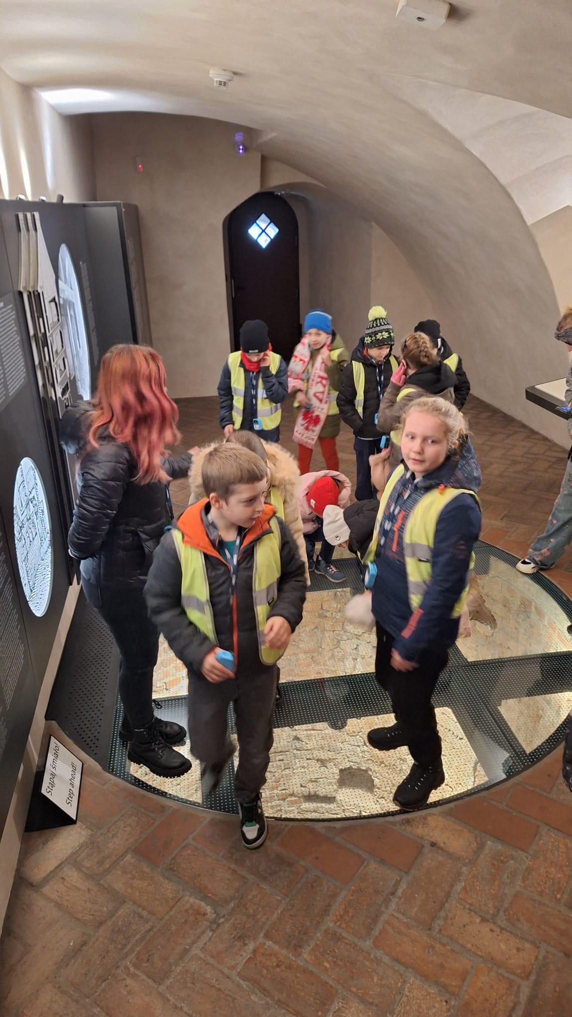 W połowie miesiąca, korzystając z akcji „Darmowy listopad na Wawelu”, klasa 3a wybrała się na zwiedzanie królewskich komnat. Podczas wyjścia dzieci, słuchając opowieści przewodnika, poznały nowe słownictwo – m.in. takie pojęcia jak arrasy, kasetony, rozety czy audiencja. Uczniowie zapoznali się również z dawnymi zwyczajami panującymi na dworze królewskim, odkrywali sekrety zamkowych wnętrz, oglądali historyczne eksponaty oraz z uwagą przyglądali się obrazom i fryzom zdobiącym sale. Zwieńczeniem wycieczki była degustacja tradycyjnych, krakowskich obwarzanków, które dzieci zjadły z ogromną przyjemnością.