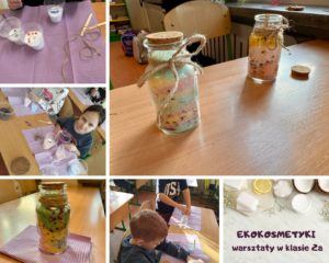 18 listopada uczniowie klasy 2a wzięli udział w niezwykłych warsztatach prowadzonych przez p. Aleksandrę. Dzieci wykonały aromatyczne sole do kąpieli. Uczestnicy zajęć poznali lecznicze właściwości a następnie stworzyli kolorowe mieszanki wykorzystując naturalne olejki i barwniki.