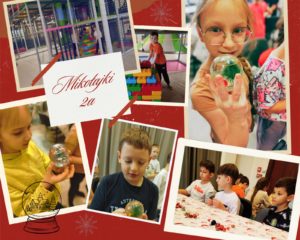 Pierwszy tydzień grudnia minął w klasie 2a pod hasłem „Mikołajki”. Każdego dnia uczniowie brali udział w mikołajkowych wyzwaniach, m.in. plastycznych i muzycznych. Jednak największy zachwyt wzbudził zorganizowany przez pomocników Świętego Mikołaja wyjazd do Sali Zabaw „Ale frajda!”, gdzie na dzieci czekały warsztaty pt. „Śnieżna kula”, a także długi czas wypełniony radosną (wręcz szaleńczą) zabawą. Takie niespodzianki lubimy!