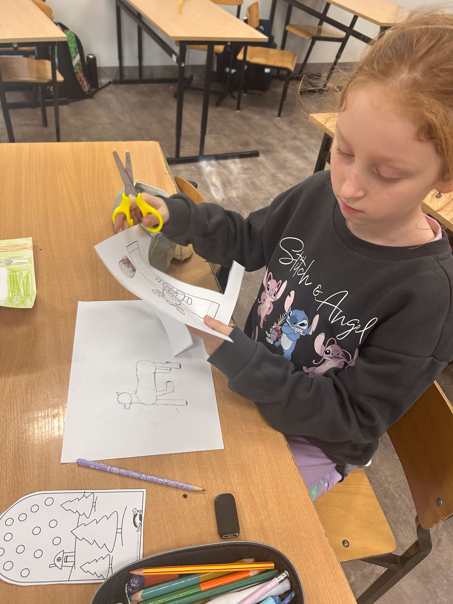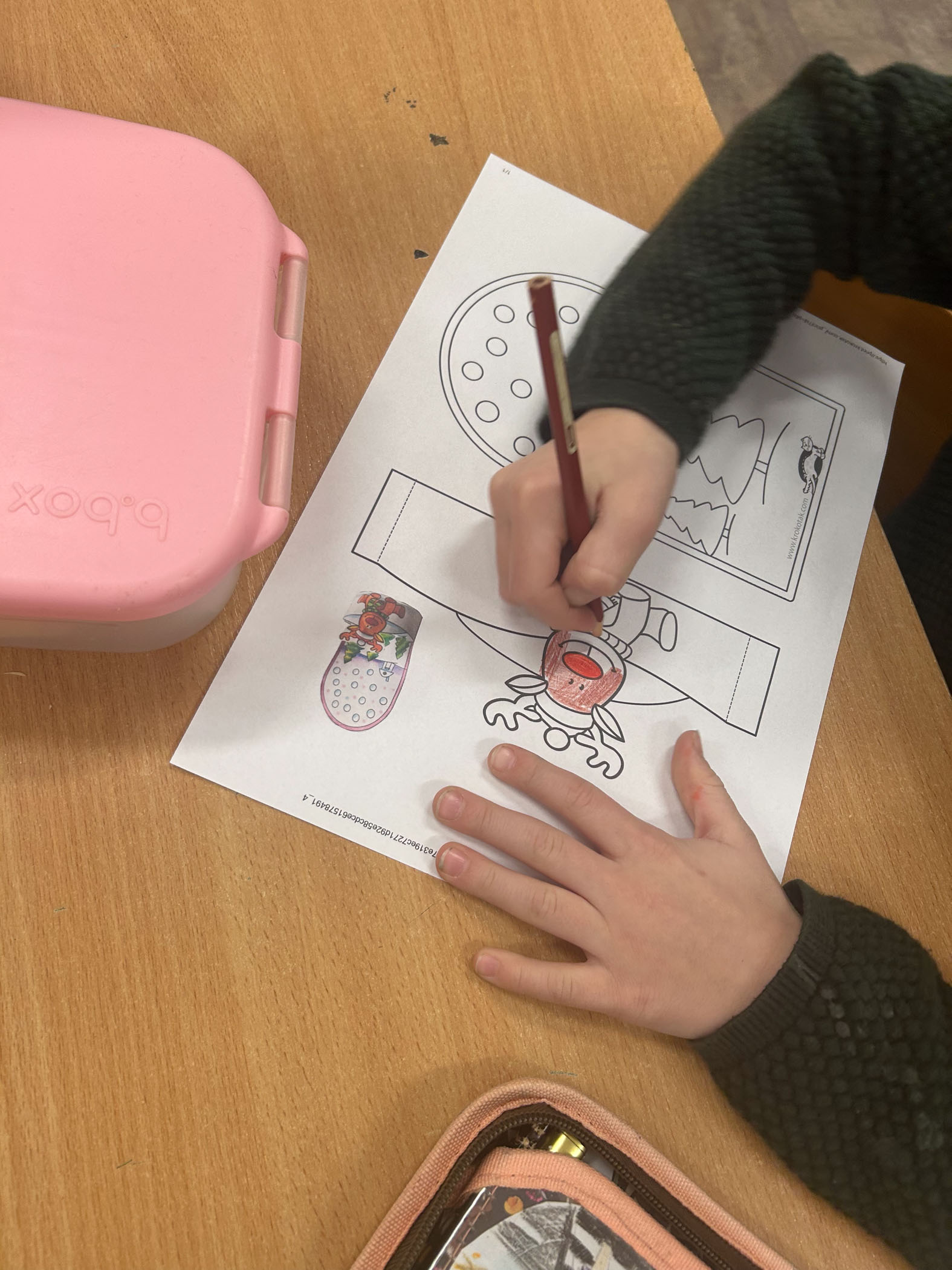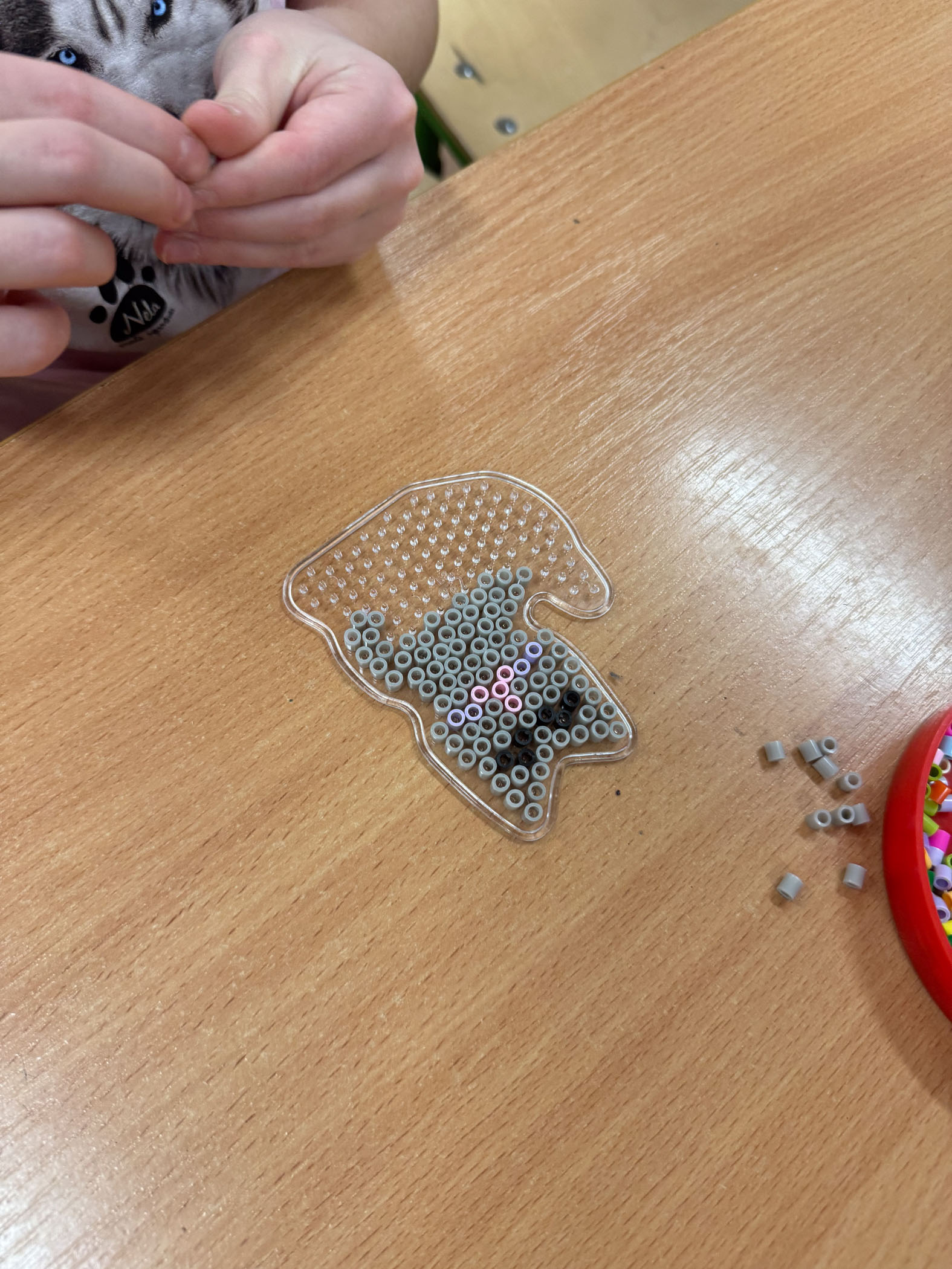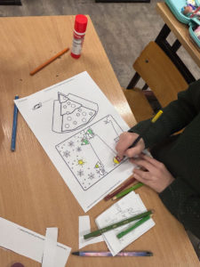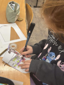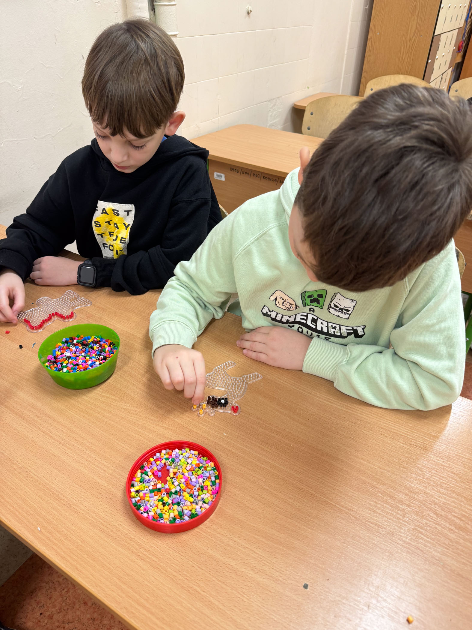 Dużym zainteresowaniem cieszyły się również kompozycje z koralików Pyssla, z których powstały kolorowe choinki, gwiazdki, aniołki oraz inne świąteczne motywy. Nie zabrakło także mini obrazów z papieru, tworzonych poprzez wycinanie, składanie i naklejanie drobnych elementów. Uczniowie komponowali swoje prace, dbając o detale i estetykę wykonania.