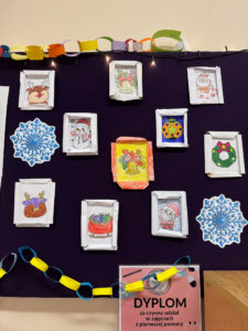 Całym zajęciom towarzyszyły świąteczne utwory muzyczne, które wprowadzały radosny, ciepły nastrój i sprzyjały twórczej atmosferze. Dzięki temu dzieci mogły poczuć magię zbliżających się świąt i wyrazić ją poprzez sztukę. Efekty pracy uczniów są naprawdę imponujące – kolorowe, starannie wykonane i pełne świątecznego klimatu. Gazetka świetlicowa pięknie prezentuje talent, pomysłowość oraz ogromne zaangażowanie naszych wychowanków.