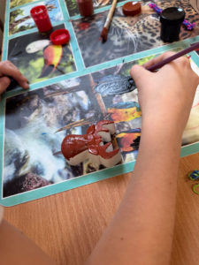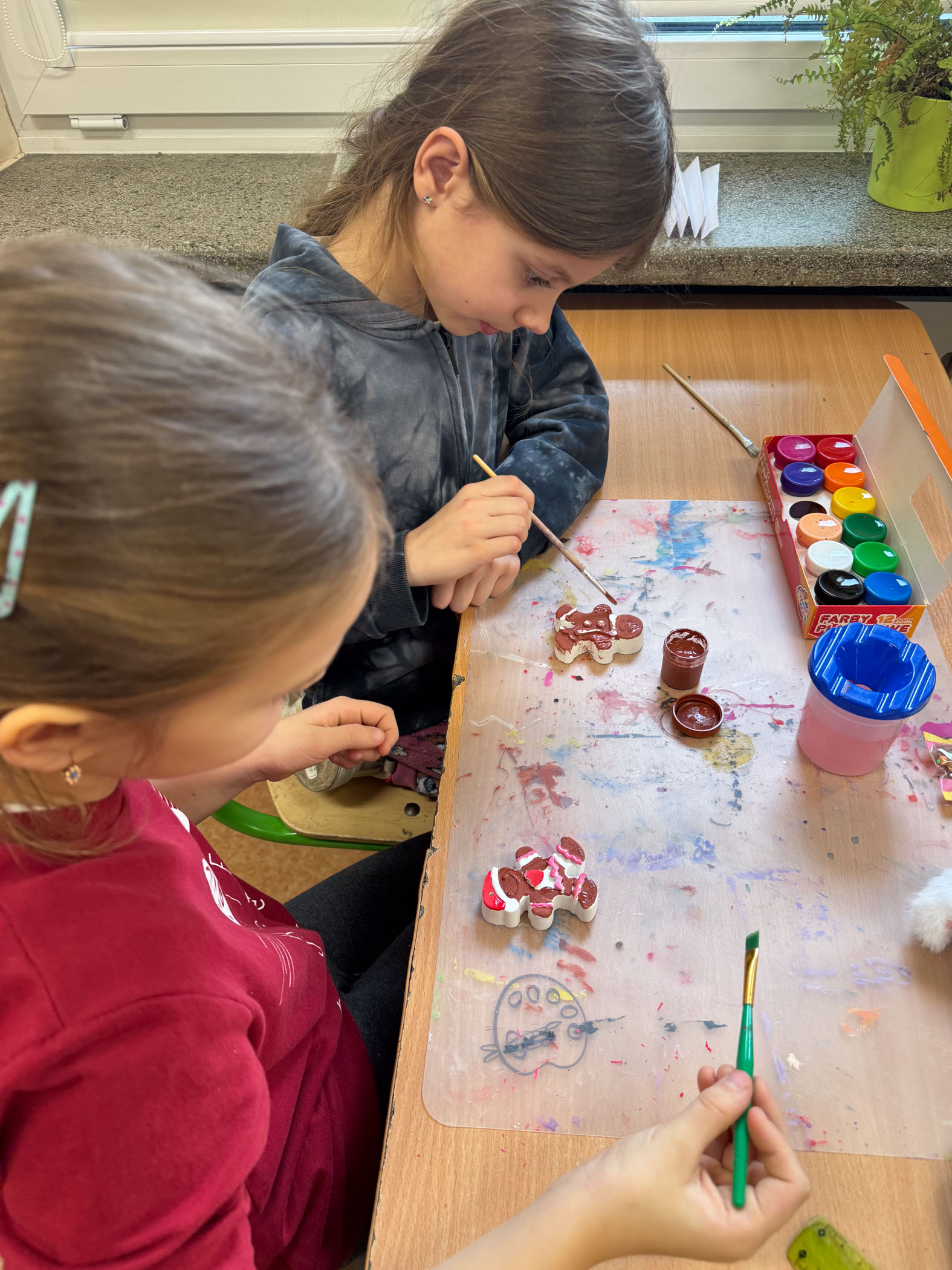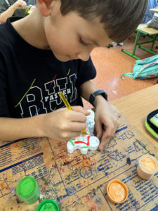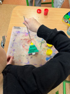 W ostatnich dniach świetlica szkolna zamieniła się w prawdziwą, świąteczną pracownię artystyczną. Uczniowie z ogromnym zaangażowaniem wykonywali różnorodne prace plastyczne, wykorzystując wiele ciekawych technik i materiałów. Dzieci starannie i pomysłowo malowały farbami gipsowe figurki. Każda praca była wyjątkowa i odzwierciedlała indywidualną kreatywność młodych artystów.