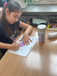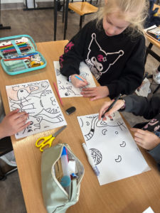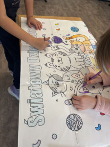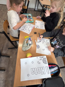 Dzieci z ogromnym zaangażowaniem pracowały nad kolorowanką XXL, którą wykonywały wspólnie. Każdy miał swój fragment do pokolorowania, a efekt końcowy był naprawdę imponujący! Wspólna praca pokazała, jak świetnie potrafimy ze sobą współpracować i jak wiele radości daje tworzenie czegoś razem.