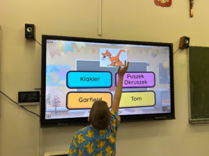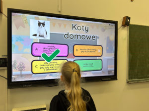 Nie zabrakło również zabaw edukacyjnych. Na tablicy multimedialnej graliśmy w memory o kotach, ćwicząc spostrzegawczość i pamięć. Rozwiązywaliśmy także quizy oraz krzyżówkę tematyczną, dzięki którym poznaliśmy wiele ciekawostek o naszych mruczących przyjaciołach. To był wspaniały czas integracji, kreatywności i nauki poprzez zabawę. Już nie możemy doczekać się kolejnych świetlicowych świąt!