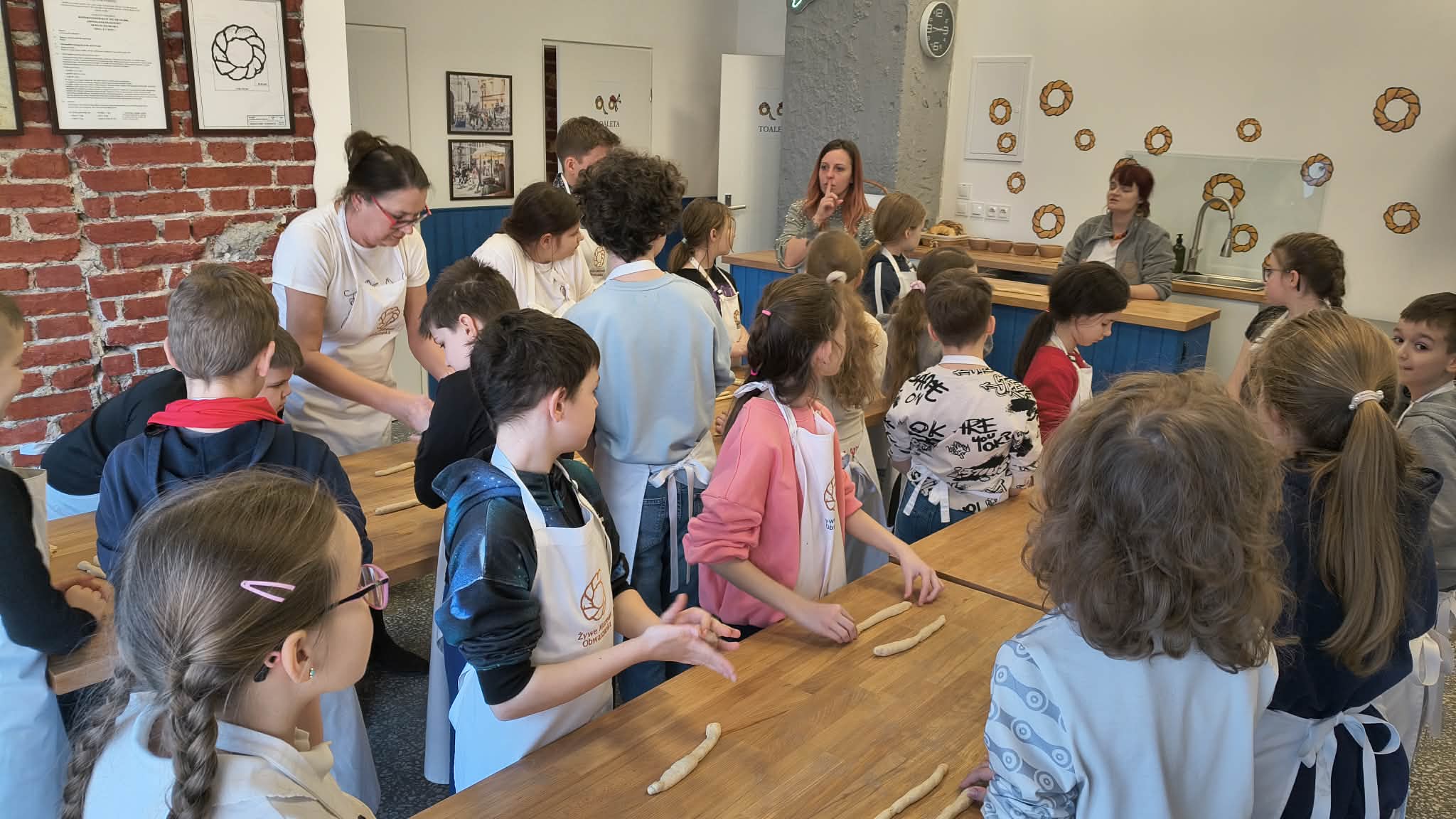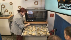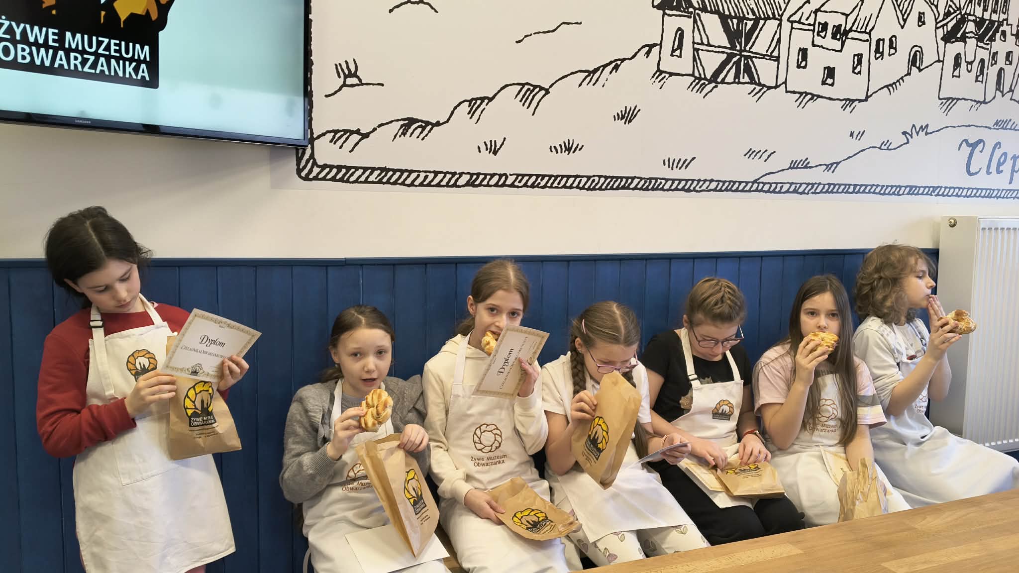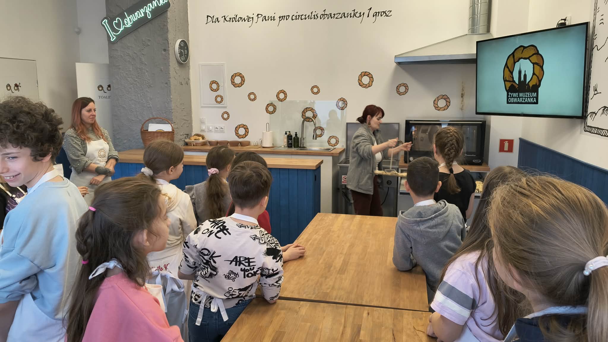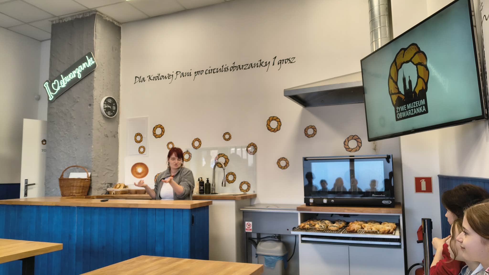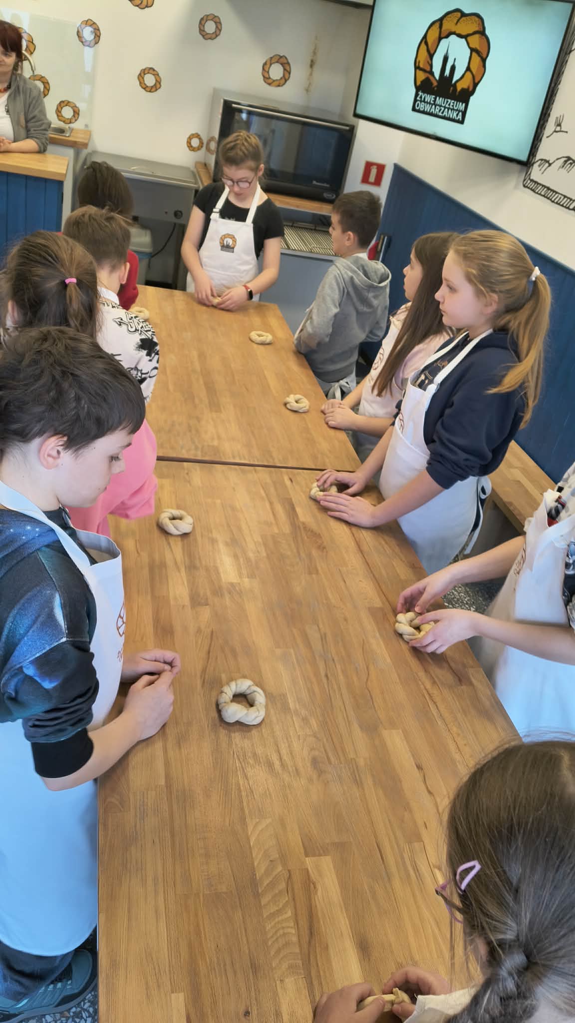 Najpierw odwiedziliśmy Żywe Muzeum Obwarzanka. Wysłuchaliśmy historii powstania obwarzanka oraz obejrzeliśmy krótkie filmiki na jego temat. Następnie samodzielnie lepiliśmy obwarzanki. Okazało się, że nie jest to łatwa praca, ale poradziliśmy sobie bardzo dobrze. Nasze obwarzanki zostały upieczone, a potem mogliśmy je zjeść.