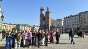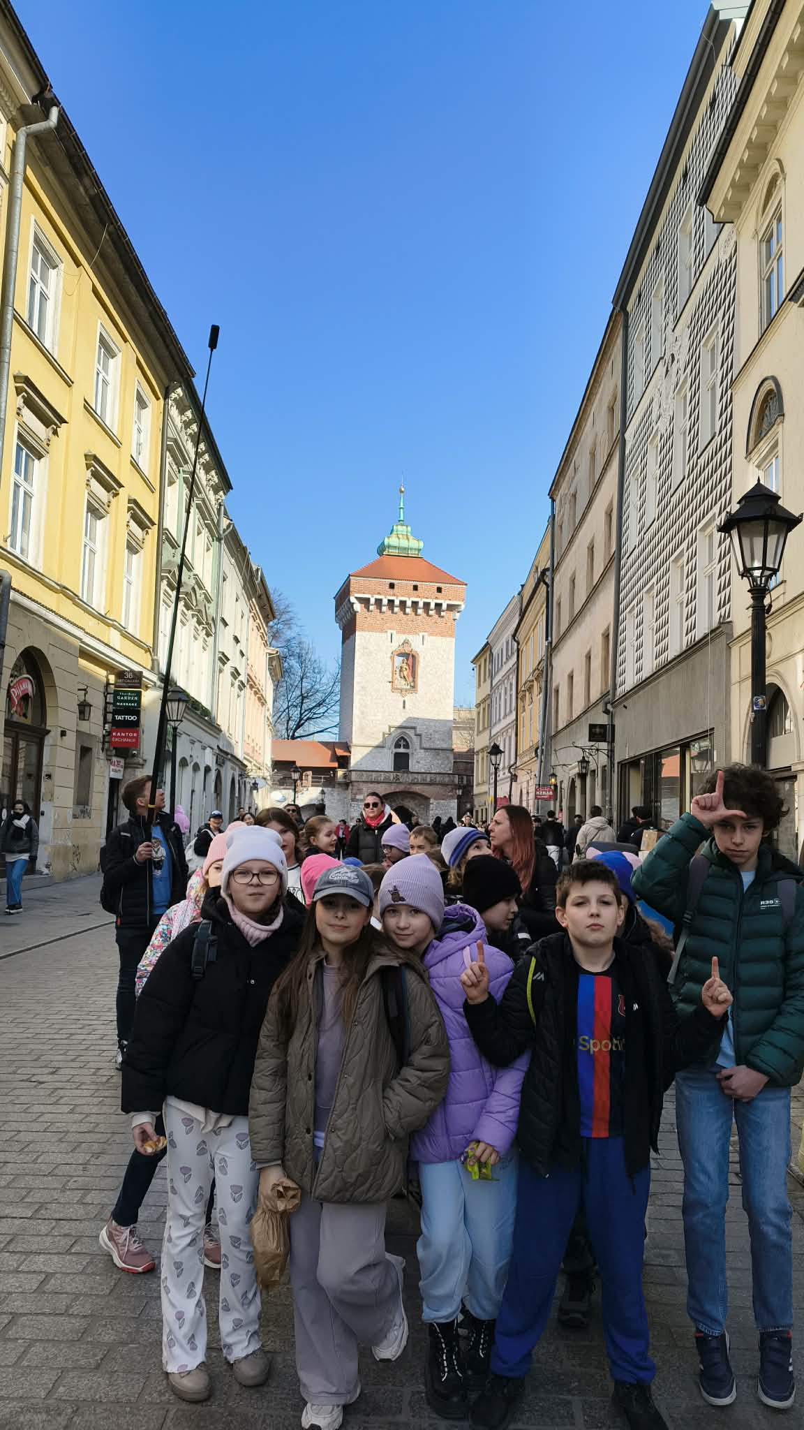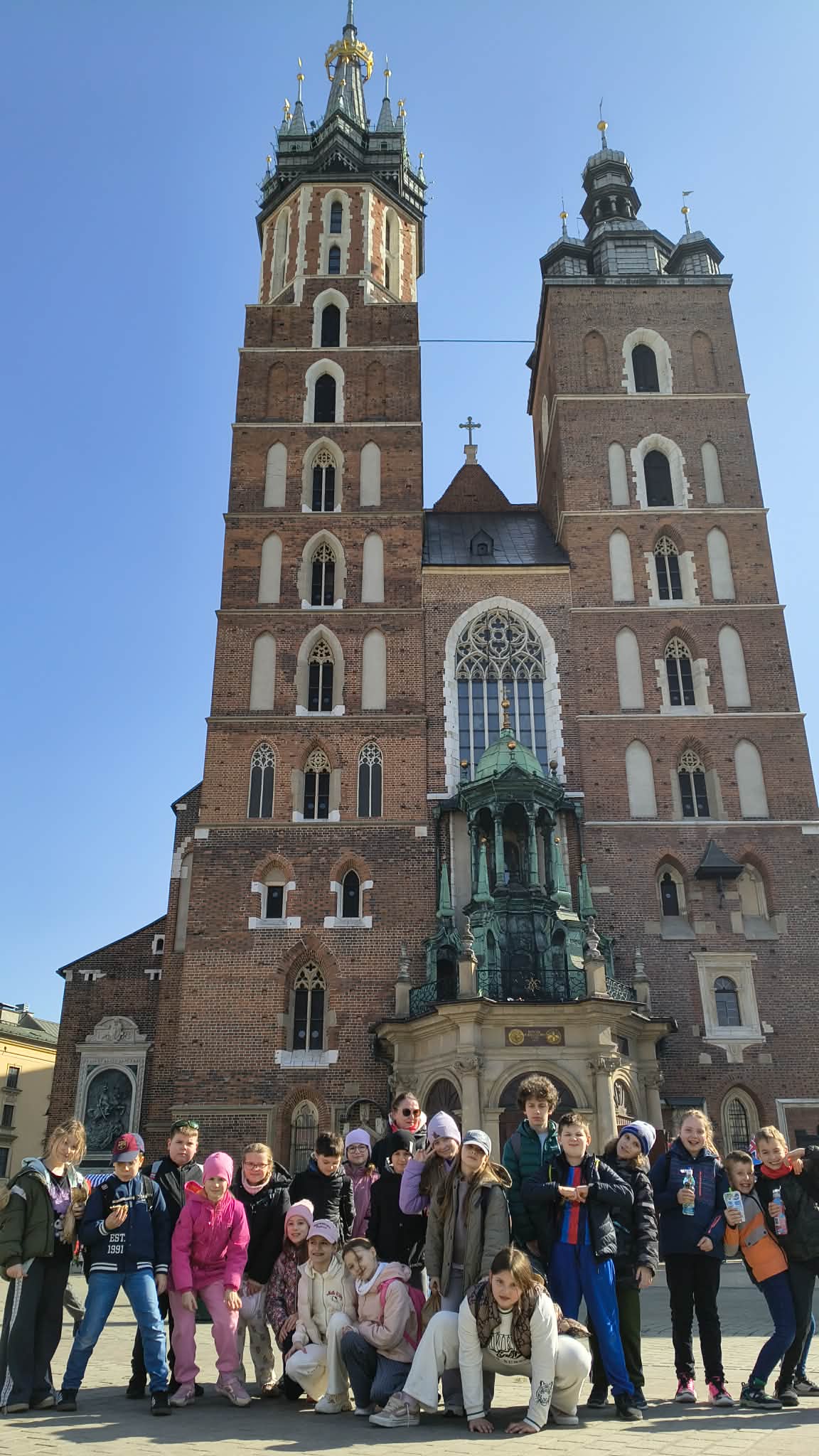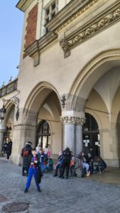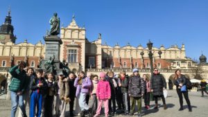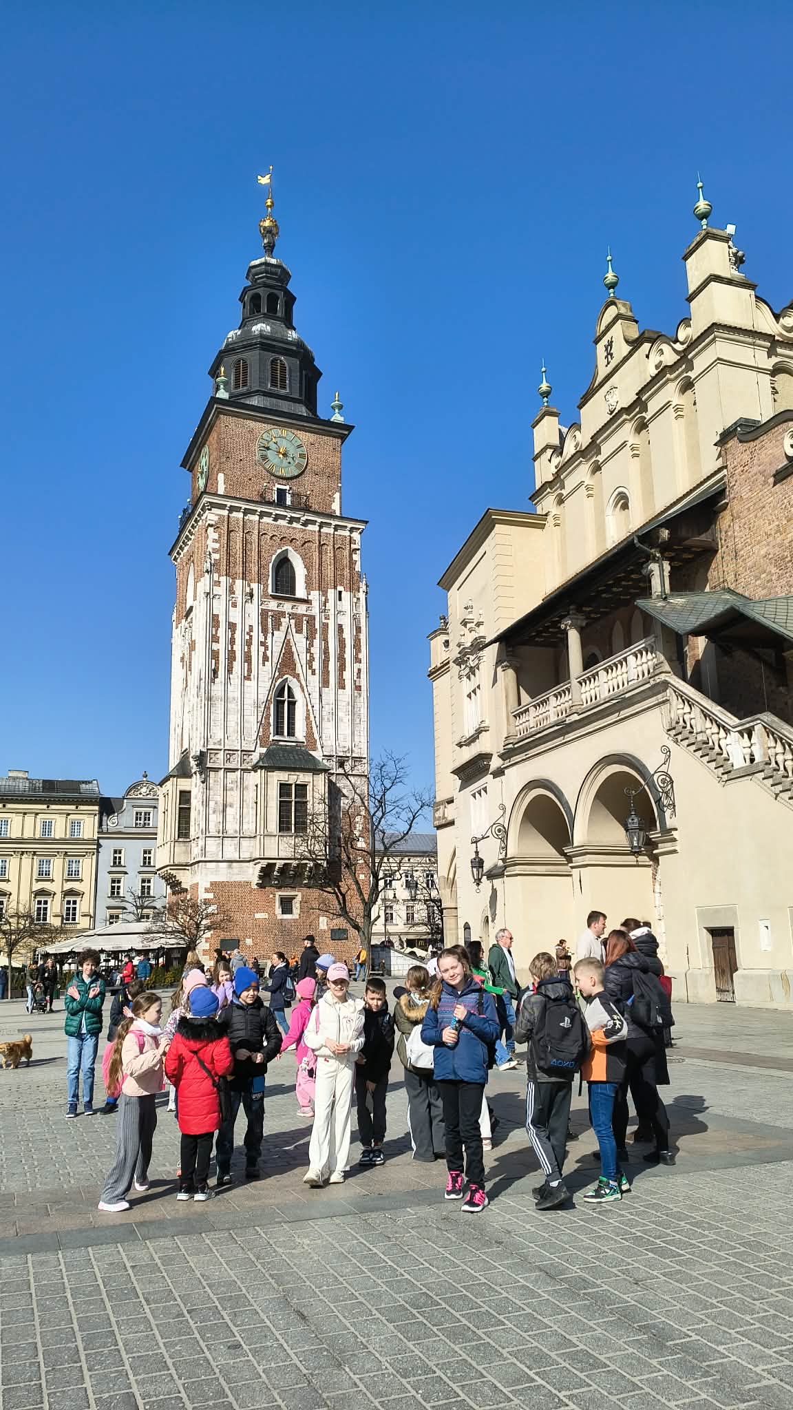 Później wybraliśmy się na spacer po Rynku Głównym, gdzie podziwiając zabytki poznaliśmy trochę historii Krakowa.